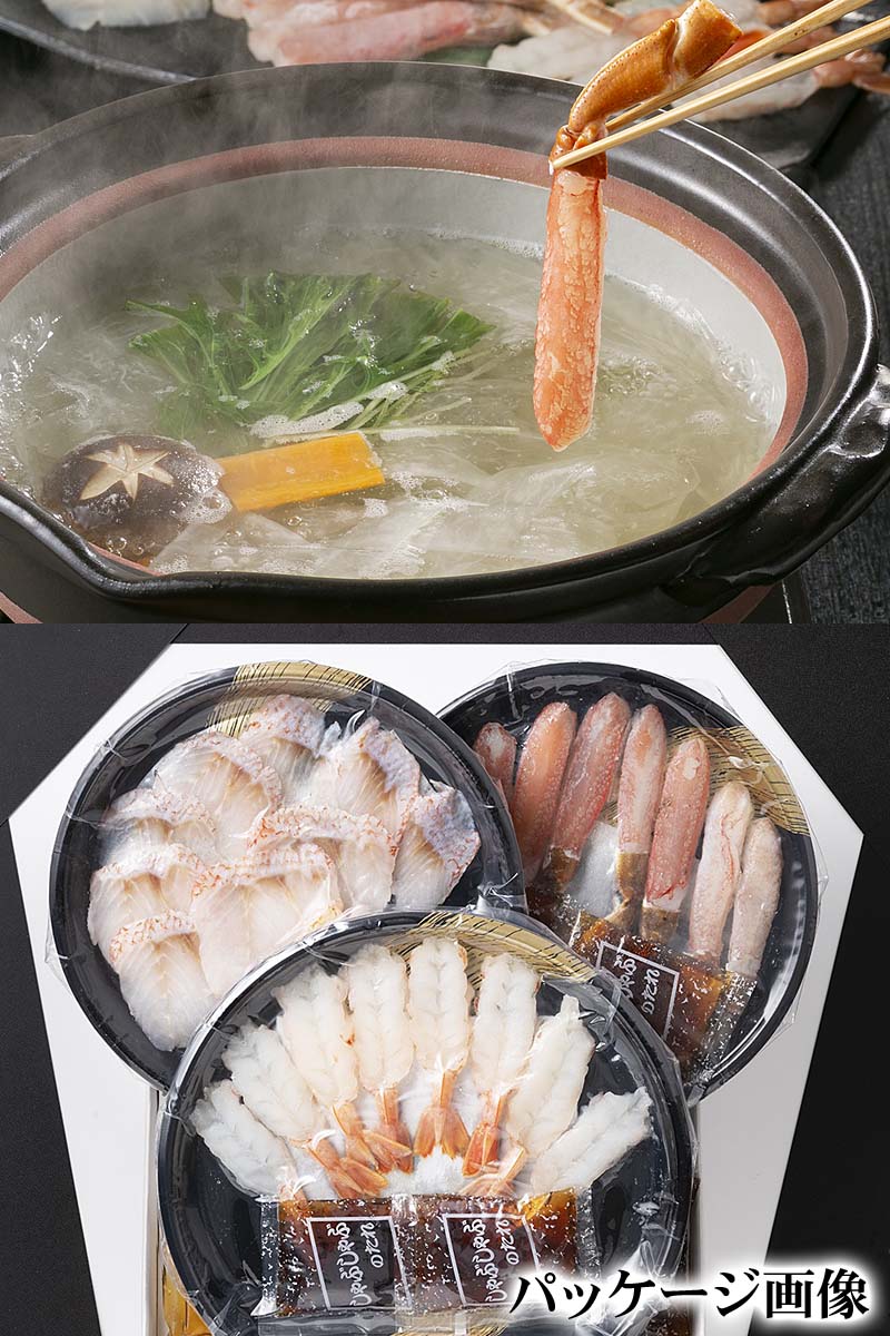 ■(送料無料) 海鮮しゃぶしゃぶセット ズワイガニ エビ キチジ 海鮮鍋セット 海鮮ギフト お取り寄せ グルメ 3種類の海鮮しゃぶしゃぶ、ダシ付きでお手軽にしゃぶしゃぶできます ずわいがに えび
